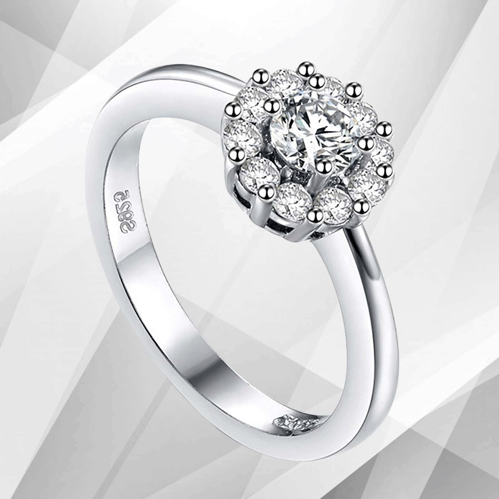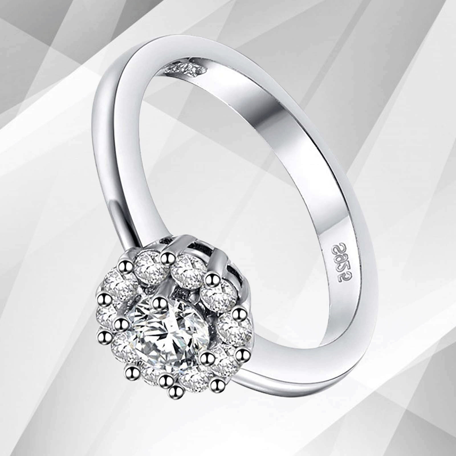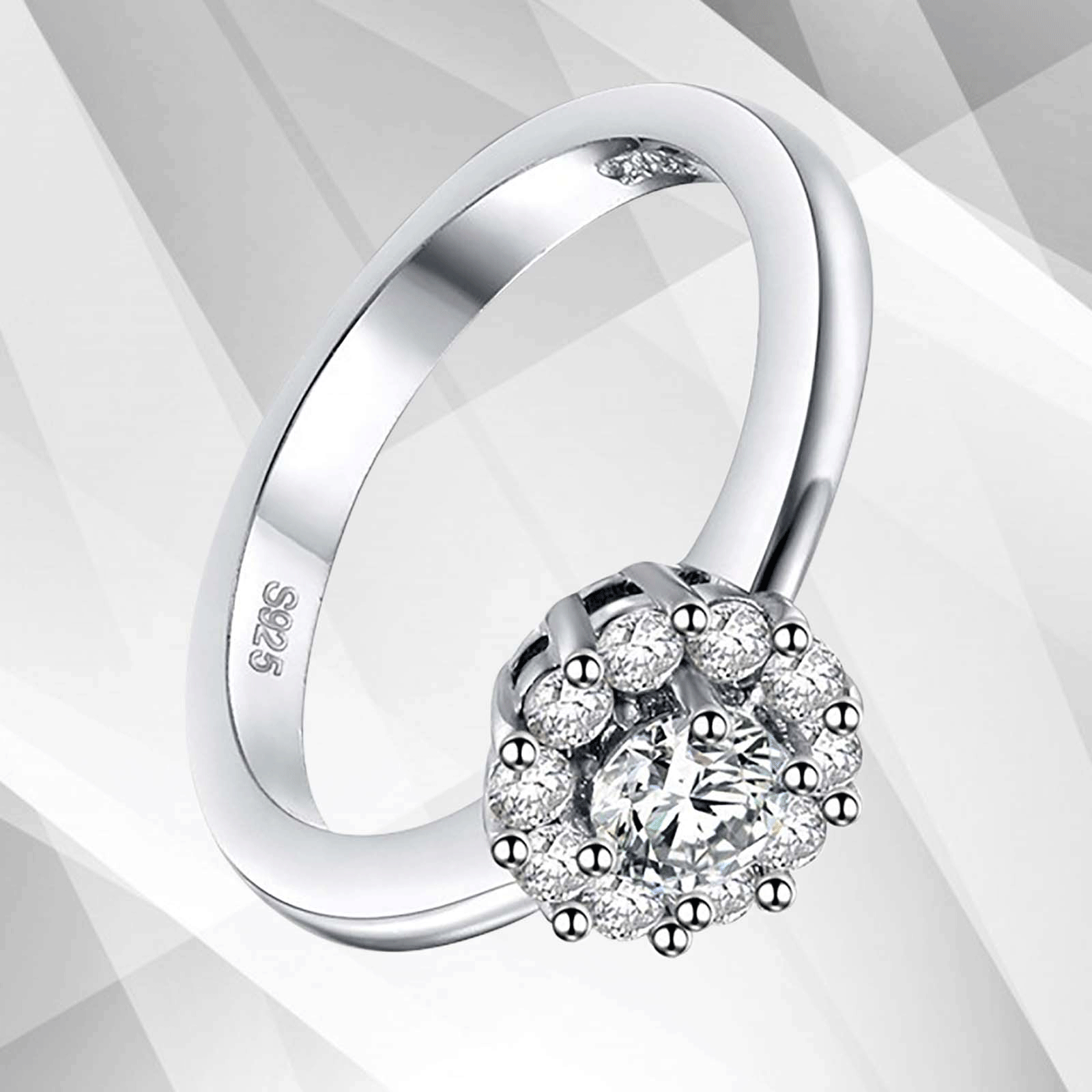 1.7Ct Round-Cut 11 CZ Diamonds Halo Bridal Engagement Ring 18K White