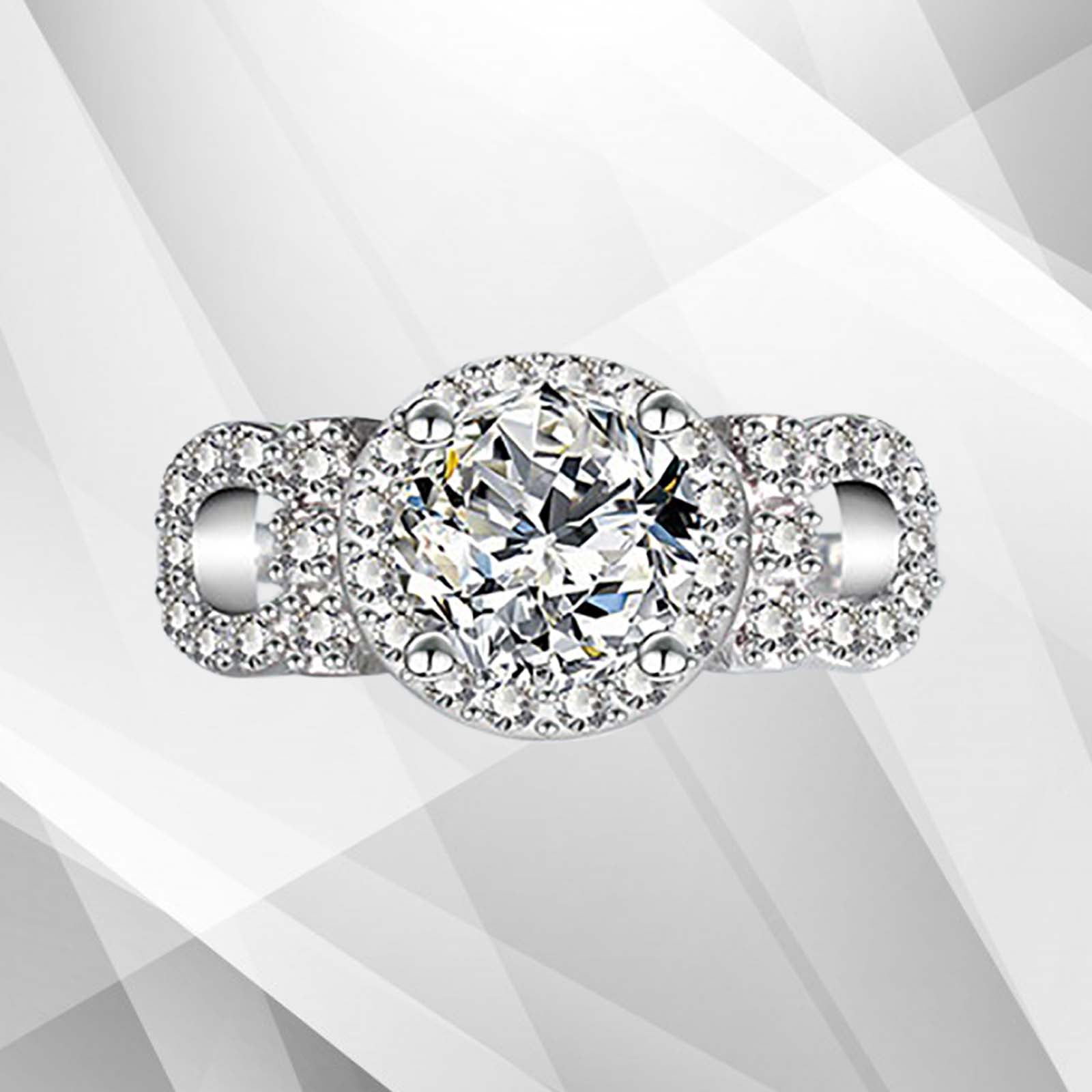 2.5Ct Round-Cut Diamonds Cushion Halo Bridal Engagement Ring 18K White