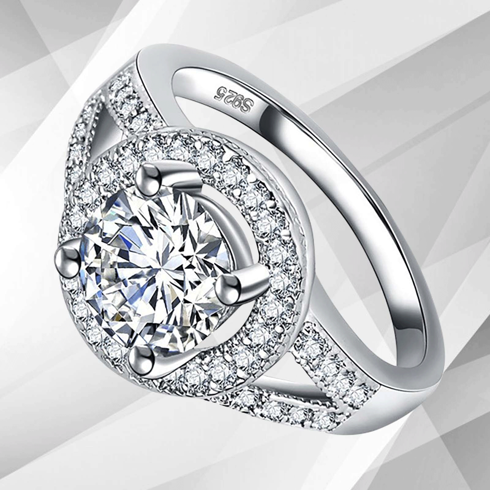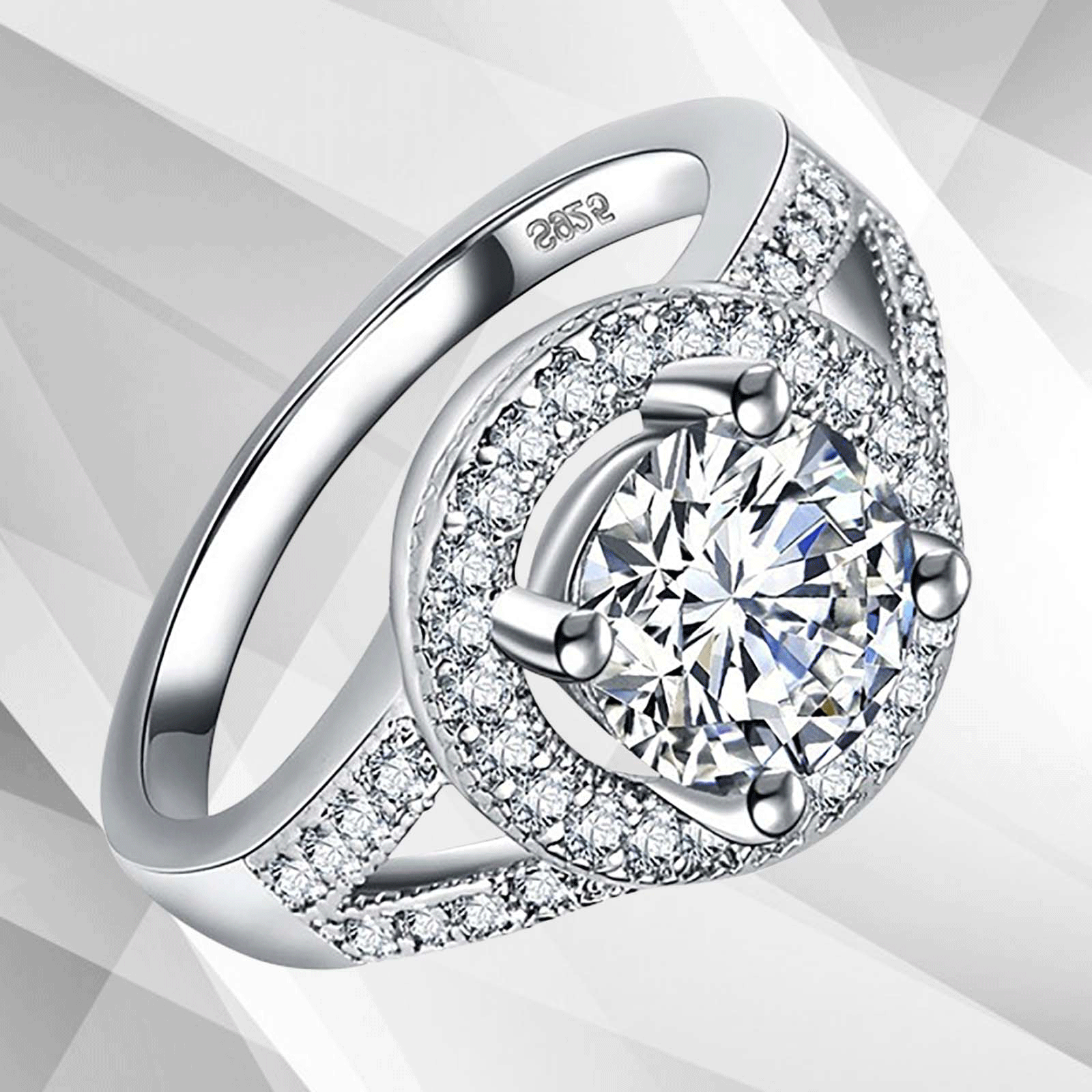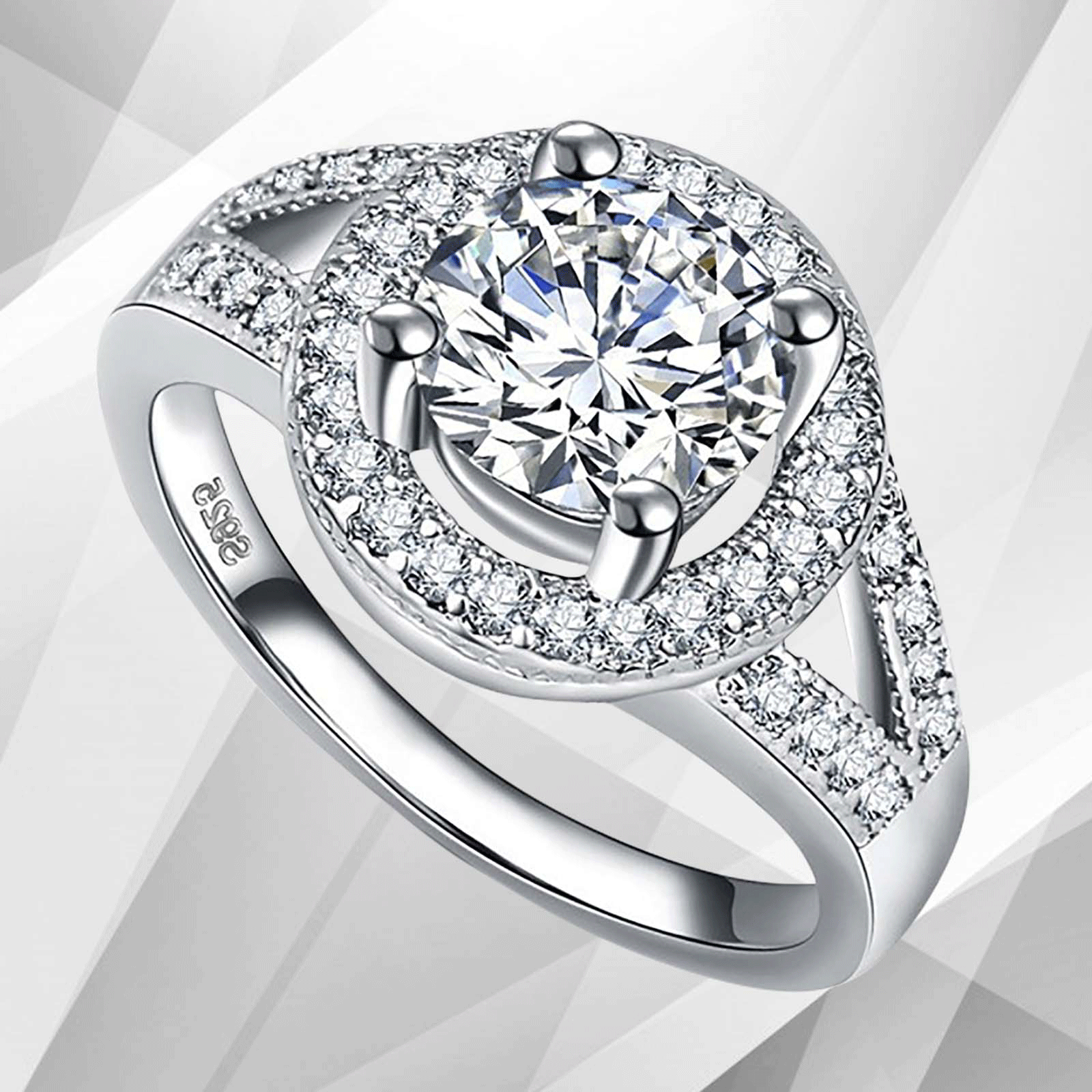 2.5Ct Round-Cut Diamonds Cushion Halo Bridal Engagement Ring 18K White