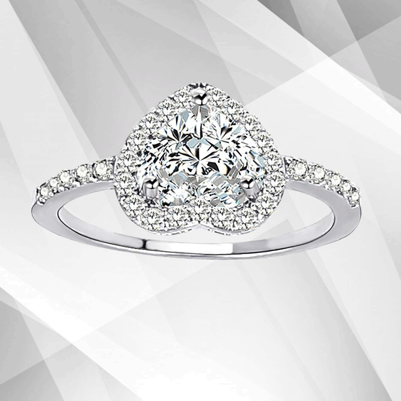 2.88Ct Heart-Cut CZ Diamonds Halo Bridal Engagement Ring 18Ct White