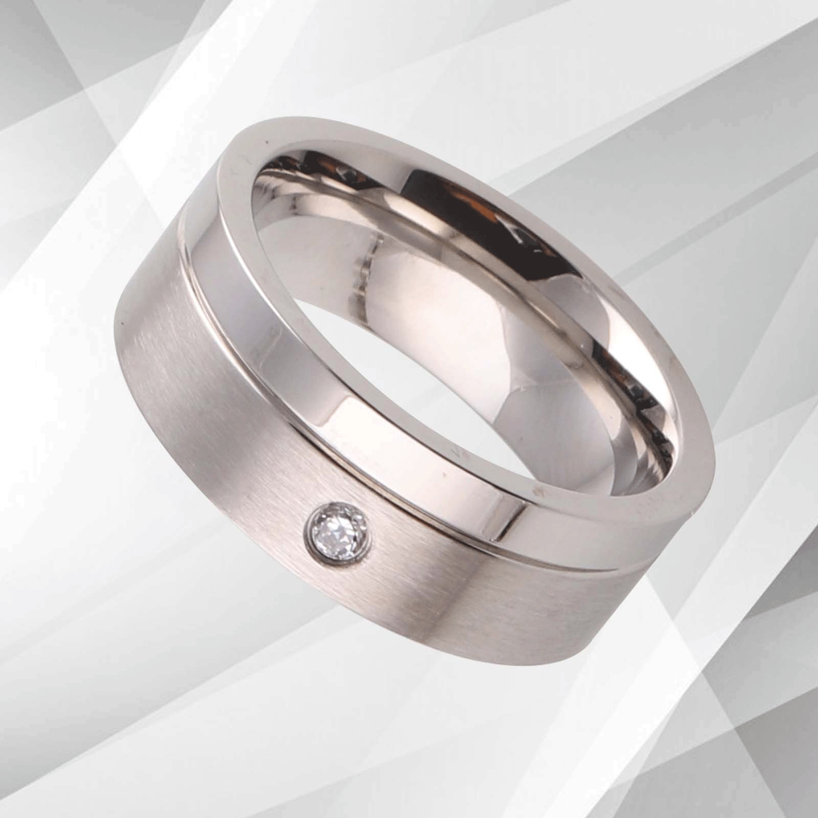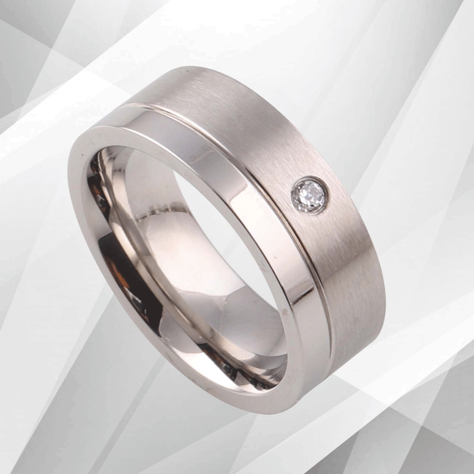 Prestigious Designer 7mm Wide Brushed And Sparkling Titanium with Three 0.35Ct CZ Diamonds Engagement Wedding Anniversary Gift Band Ring - Sparkling 18Ct White Gold Finish On The sides - Comfort Fit.