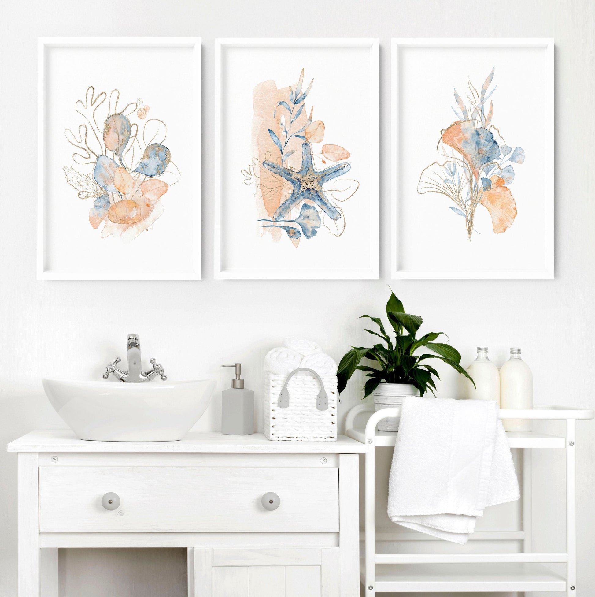 In fact this set includes three enchanting Coastal bathroom decor prints, each capturing the essence of the coast. These prints withstand the test of time and maintain their vibrant colours and fine details as they are expertly crafted using high-quality materials.