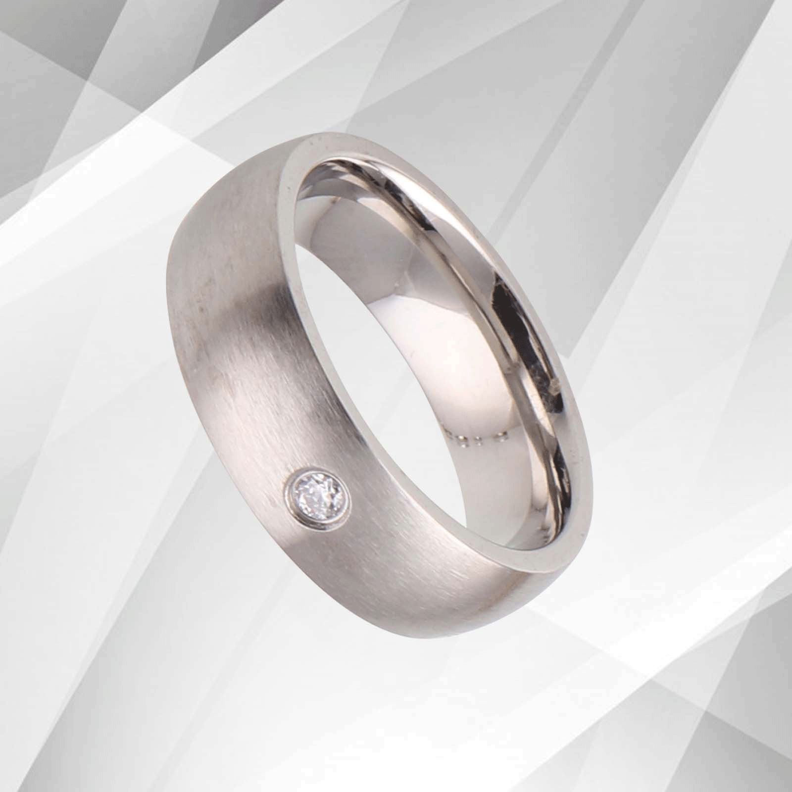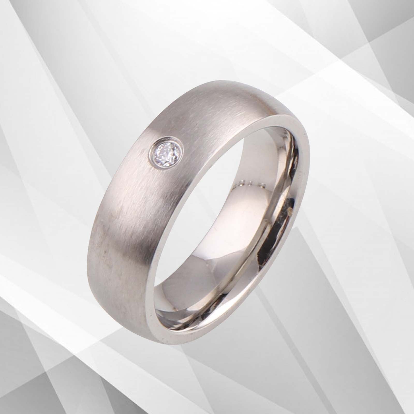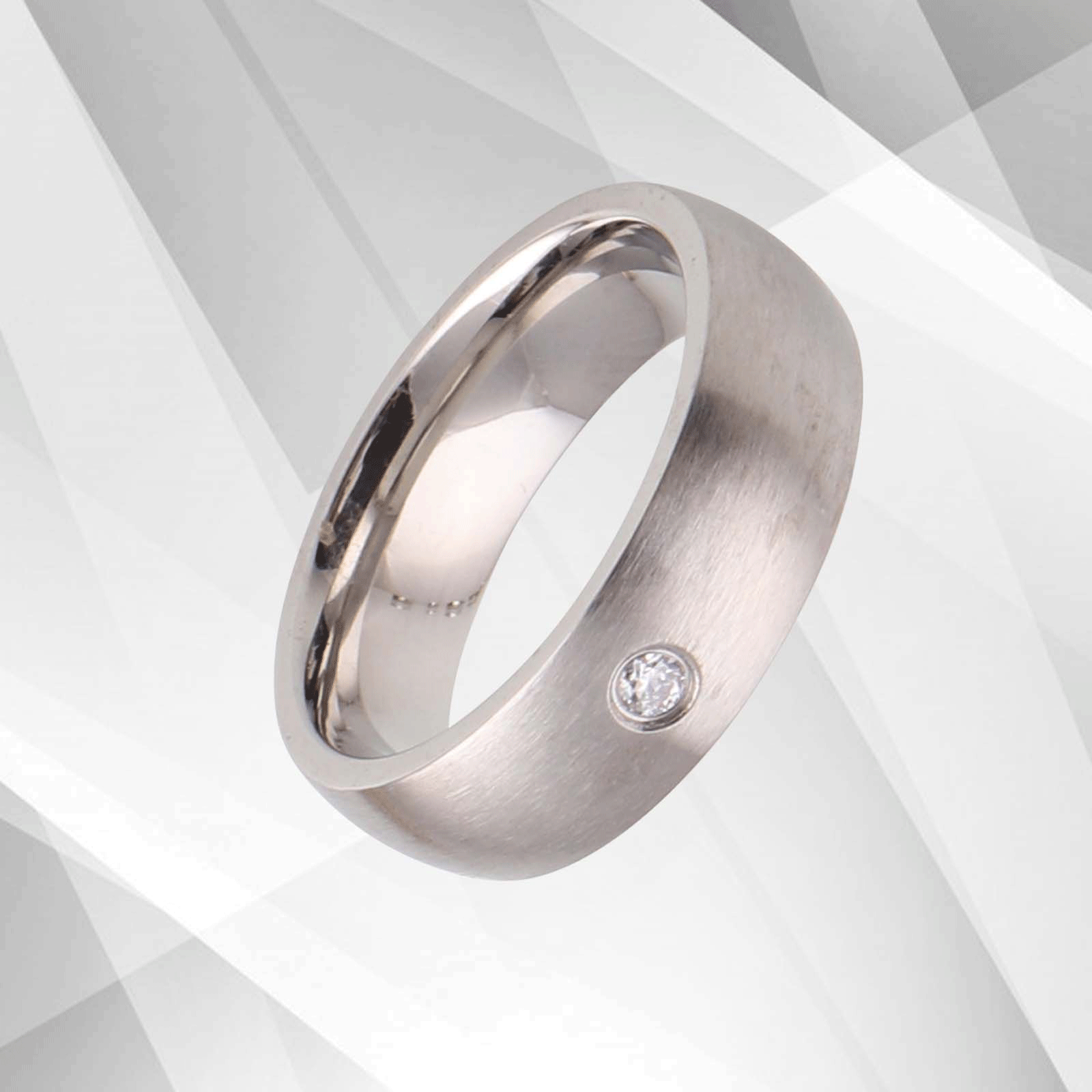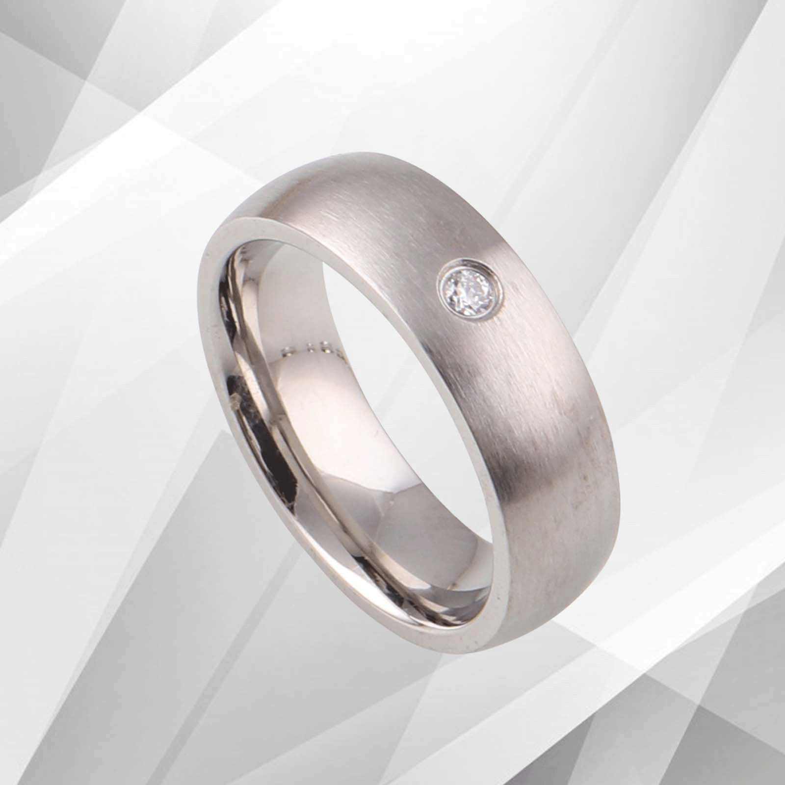 Gorgeous 6mm Wide Matt Finish Titanium with 0.35Ct CZ Diamond Engagement Wedding Anniversary Gift Band Ring - Sparkling 18Ct White Gold Finish Inside and Outside - Comfort Fit.