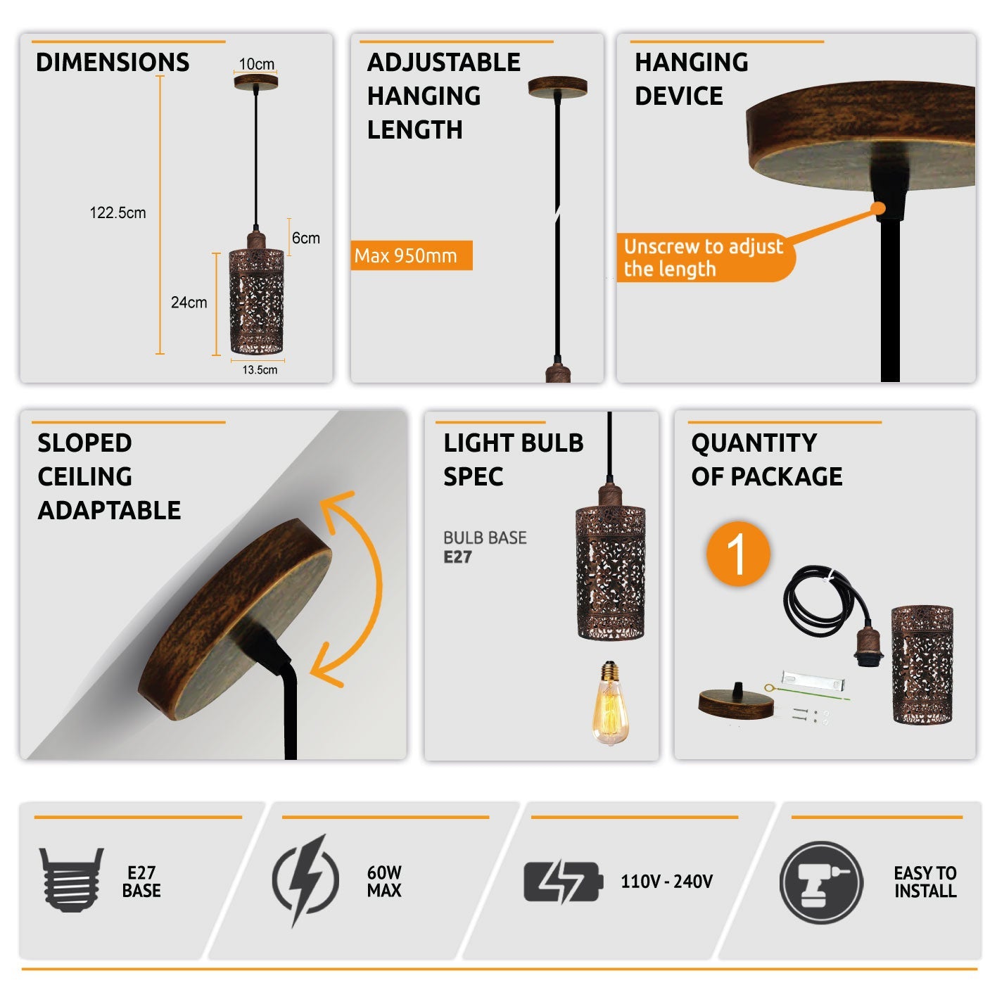 - Bulb Requirements: Requires E27 max 60W