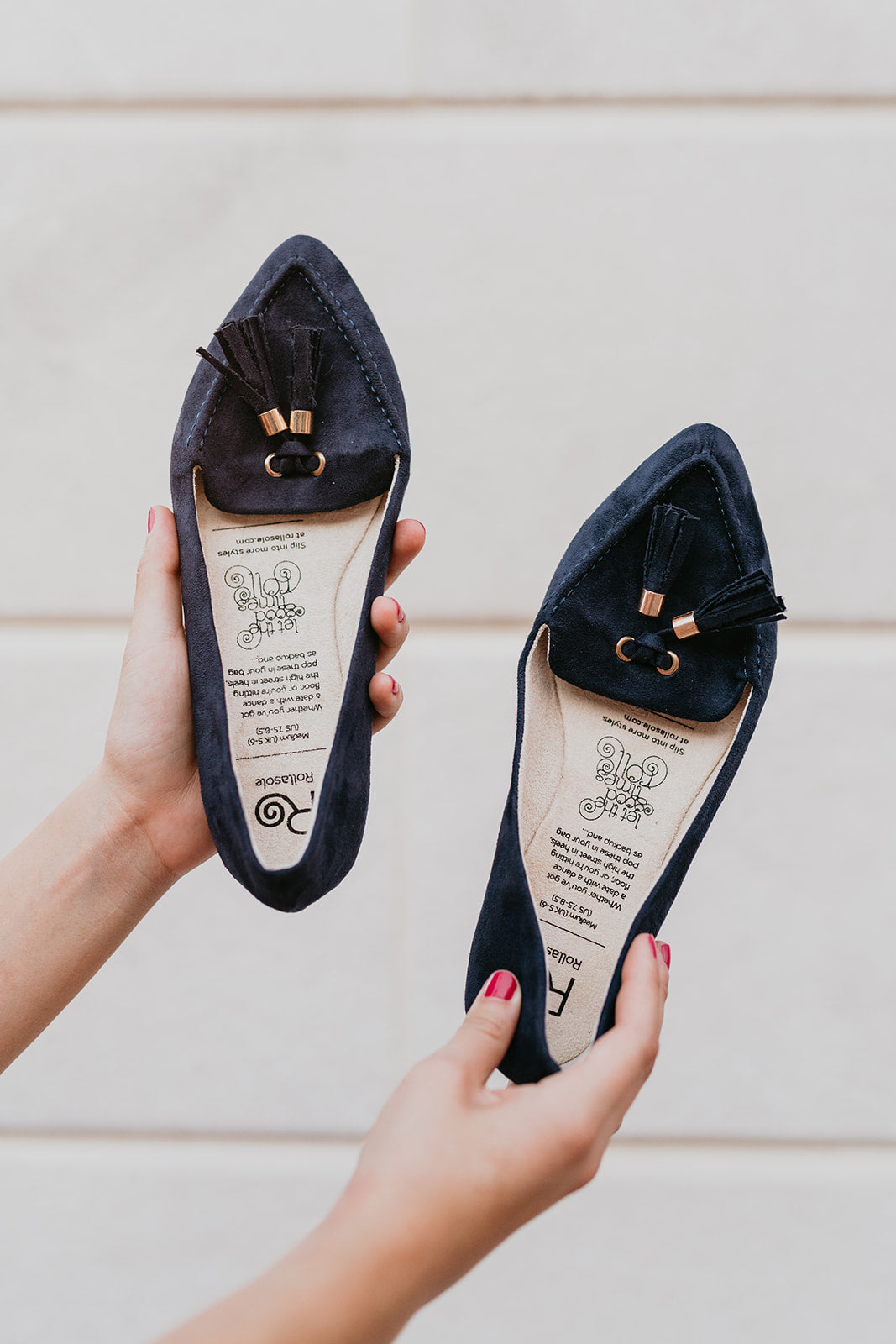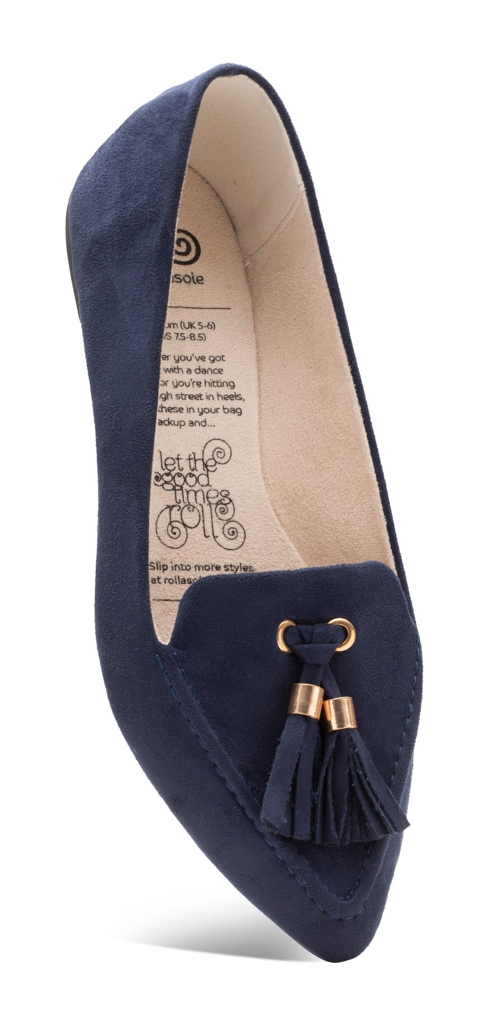 The latest in line of our popular Rollasole loafers in rich midnight blue. Sophisticated, sassy and beautifully crafted. Effortlessly move from the office to a date night in these pointed loafers.