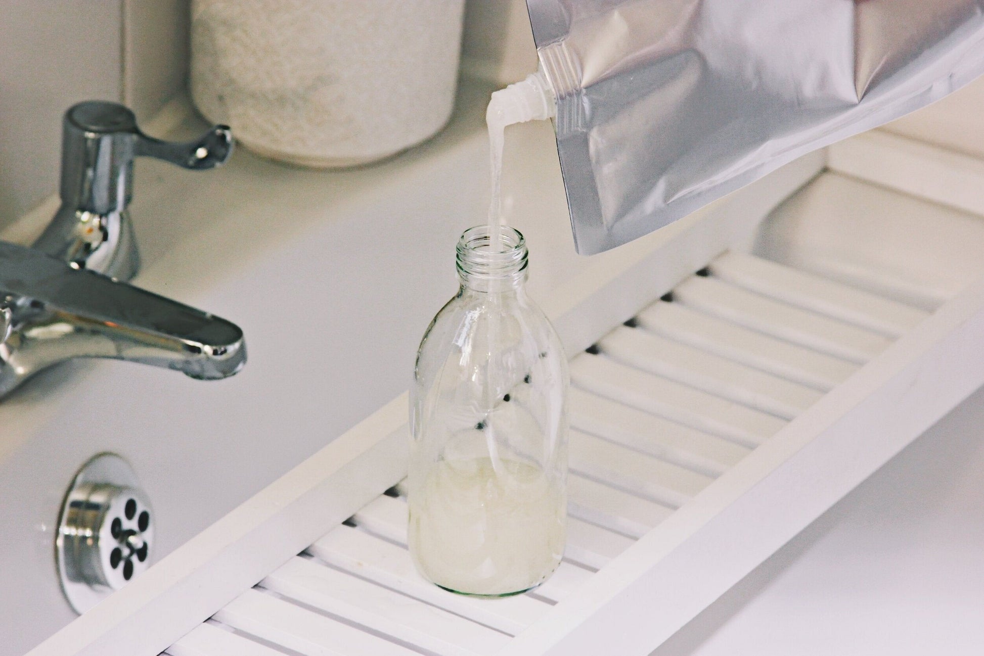 - Lather onto slightly damp skin with hands or a washcloth